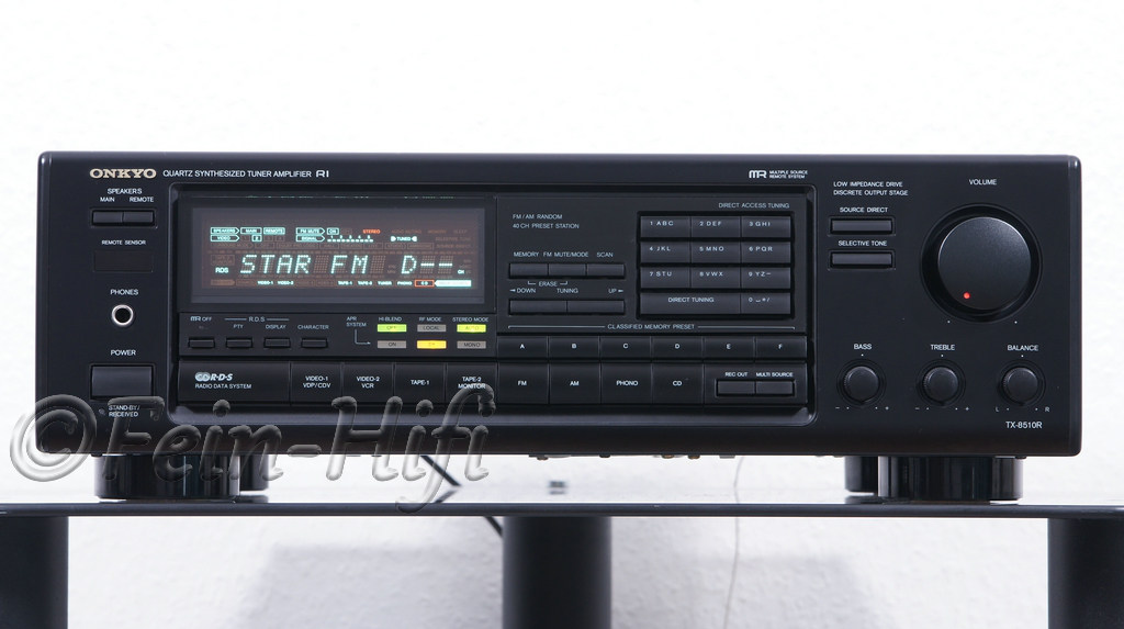 Mit diesem komfortablen HiFi-VIDEO Receiver Verstärker setzte ONKYO die Tradition erfolgreicher Receiverentwicklungen fort. Die Leistung und Ausstattung des TX-8510 sind in dieser Klasse vorbildlich, wie Testzeitschriften bestätigten. Durch RDS (RADIO DATA SYSTEM) wird automatisch auf dem gut ablesbaren Punktmatrix-Display der Sendernamen oder Programmtyp, wie z.B. Sport oder News, dargestellt. Das Gerät hat 6 Eingänge inkl. Phono sowie Anschlüsse für 2 Lautsprecherpaare.