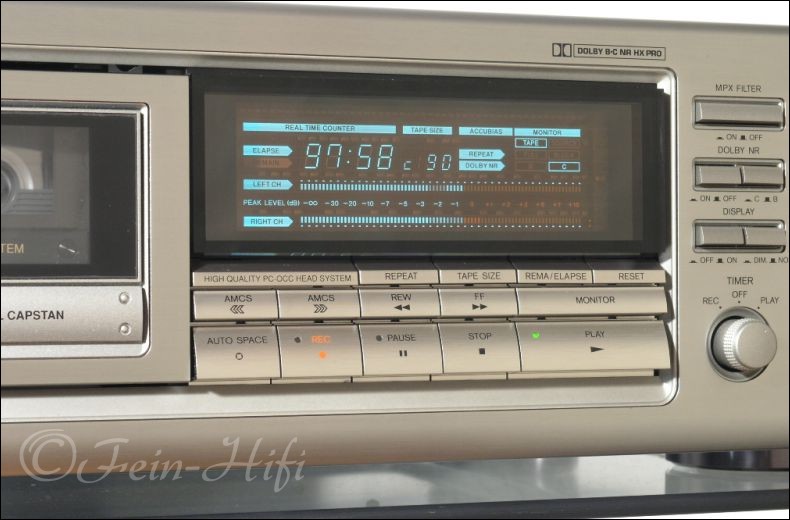 Dieses Integra-Deck war das Topmodell und ist durch seinen breiten Dynamikbereich, der fein nuancierten Auflösung und präzisen Spitzenpegelreproduktion für die hohen Anforderungen von CD-Aufzeichnungen wie geschaffen. Sein logikgesteuertes Dreimotoren-Laufwerk mit Doppelcapstan gewährleistet durch seine geschlossene Bandführung eine durchgehend hohe Gleichlaufpräzision. Darüber hinaus dämpft die Cassettenstabiliserung das Cassettengehäuse ab, um auch feinste Vibrationen und Resonanzen aufzufangen. Die getrennten Aufnahme- und Wiedergabeköpfe sind mit dynamiktreuen PC-OCC-Spulen ausgestattet, um Signalverlust zu minimieren. Einen weiteren, wichtigen Beitrag zur hohen Leistungsfähigkeit des TA-2870 leistet das diskret aufgebaute, niederimpedante Netzteil, das zusammen mit dem isolierten AEI-Trafo etwaigen Verfärbungen durch Streufluß effektiv entgegenwirkt. Ein erstklassiges Gerät in hochwertiger Verarbeitungsqualität.