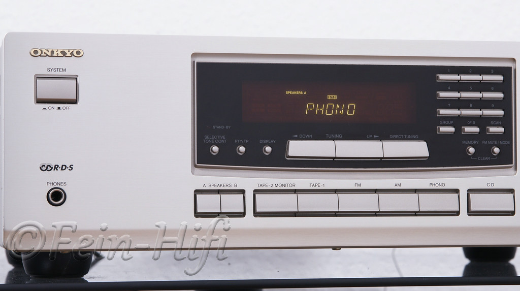 - Anschlüsse: Phono, CD/DVD, Tape/MD 1, Tape/MD 2, Antenneneingang