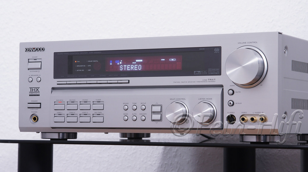 12kg schwerer Heimkino Receiver Bolide mit Surround Tonformaten wie THX-Select, Dolby Digital-EX, DTS-EX, THX-Surround EX, ProLogic IIxund DSP und einer Ausgangsleistung von 7x 100 Watt. Das Gerät hat 4 Digitaleingänge, einen 6-Kanal Eingang/Ausgang, 3x Analog Audio inkl. Phono (Plattenspielereingang), 4x AV mit Component-Video und S-Video-Anschlüssen. Man kann bis zu 7 Lautsprecher + einen aktiven Subwoofer anschließen. Ideal für Home Cinema oder HiFi Musik Genuss.