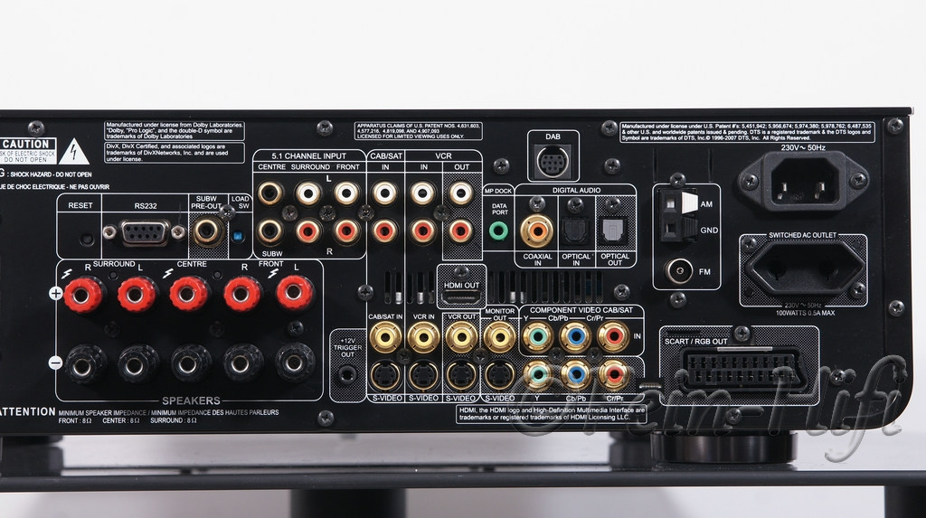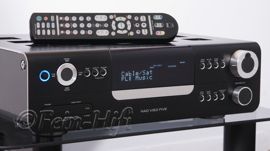 Der VISO FIVE gehört nicht nur zu den technisch anspruchsvollsten digitalen DVD-Surround AV-Receiver (Heimkino Receiver und DVD-Player in ein Gerät), sondern es handelt sich zudem um eine Heimkino-Komponente mit einer überragenden Klangtransparenz. Hier greift die Entwicklungsphilosophie „Music First“ von NAD. Die Hochleistungs-Komponenten in allen analogen Audio-Schaltkreisen VISO FIVE optimieren die Qualität aller Signalquellen, einschließlich Mehrkanal-Analog-Signalquellen wie DVD-Audio. Der VISO FIVE bietet hervorragende Spielbarkeit. Mit dem Gerät können DVD-VIDEOs, DVD-R/-RW/+R/+RW, DVD-As, SVCDs mit oder ohne PBC (Wiedergabesteuerung), VCDs, DivX, CD-R/-RW und CDs einschließlich aufgezeichneter MP3s sowie WMA- und JPEG-Dateien wiedergegeben werden. Der Receiver/Verstärker hat einen Ausgangsleistung von 5x 45 Watt, einen HDMI Ausgang zum Anschließen am TV, zwei Digitaleingänge, einen Digitalausgang, 5.1 Input, 3 analog Eingänge, einen Scart Anschluss, Kopfhörerbuchse, sowie Anschlüsse für 5 Lautsprecher und für einen aktiven Subwoofer.