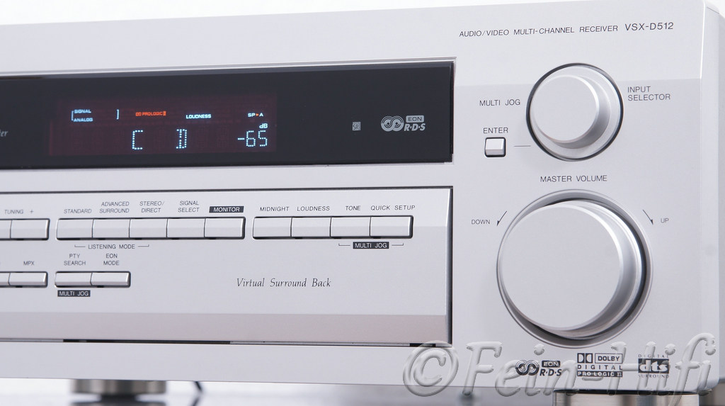 Surround AV Receiver mit vielen Anschlüssmöglichkeiten: 3x Digital, 2x Audio und 3x Audio/video. Dieser Mehrkanal-Receiver hat nicht nur Dekoder für Dolby Digital und DTS, sondern verarbeitet auch Pro Logic II. Er ist damit in der Lage, auch aus 2-Kanal-Aufnahmen Raumklang zu produzieren. Mit der Betriebsart Virtual Surround Back schaffen Sie einen zusätzlichen virtuellen Surround-Back-Kanal und können mit Quellen, die über einen Surround-Kanal verfügen, 6.1-Kanalton mit einem 5.1-Lautsprechersystem wiedergeben. Also ideal für Heimkino oder auch zum reinen Musikgenuss .