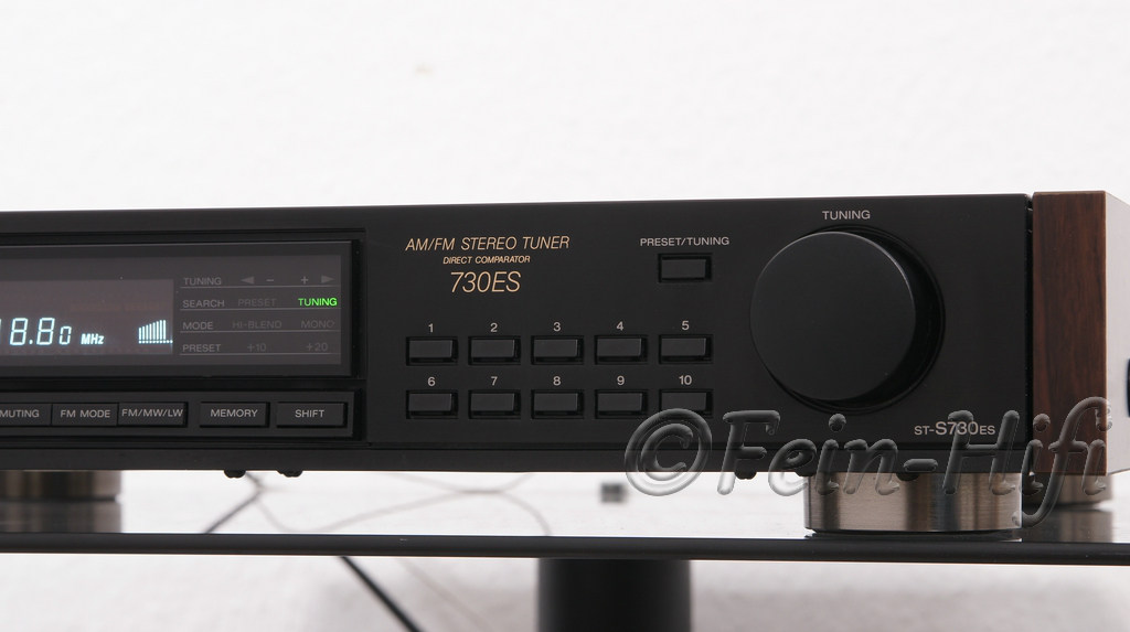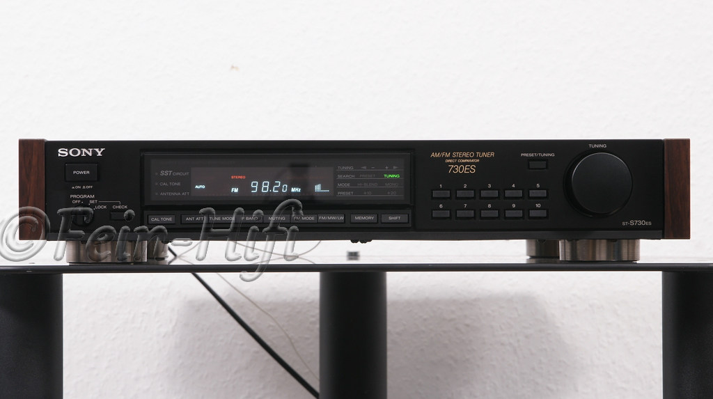 Stereo Tuner aus der Sony Esprit Reihe mit abnehmbaren Holzwangen. Die hochwertige Technik dieses Synthesizer-Tuners bietet stabilen und trennscharfen Empfang. Sony's SST-Technik (Super Sound Tracing) stellt die Bandbreite der Eingangsstufe exakt auf die Empfangsfrequenz ein. Störende benachbarte Sendefrequenzen haben so keine Chance mehr .