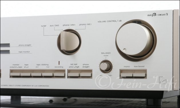 Edler Vollverstärker Bolide (13,5kg!) von der Highend-Schmiede LUXMAN mit einem ausgezeichneten Klang und ausreichend vielen Anschlüssen für alle möglichen HiFi-Geräte (CD, DVD, MD, Kassettendeck ,Tuner, Phono usw...). Luxman steht für perfekte Verarbeitung und höchster Qualität. Mit auftrennbarer Vor-und Endstufe zum Einschleifen eines Equalizers oder ähnliches.