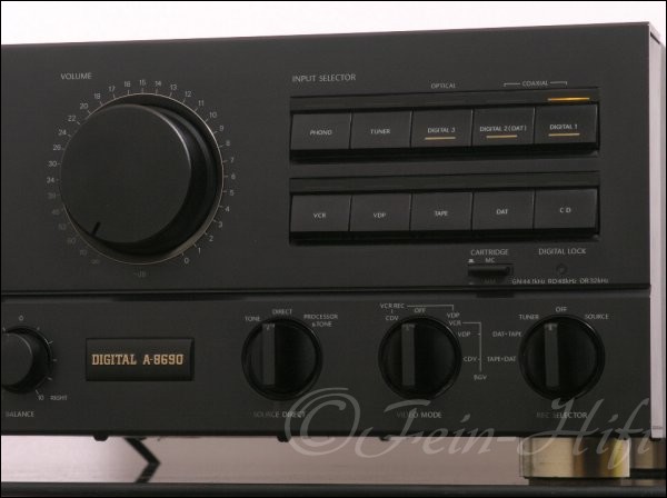 - Eingänge: Phono MM, Phono MC, Tuner/CD, Tape 1:2, Video 1:2, CD-digital, DAT-digital
