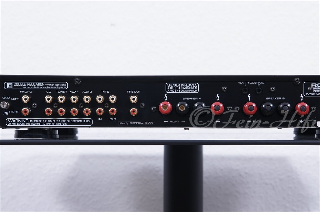 Feiner Rotel Verstärker / Amplifier. Ein erstklassiges Gerät in solider Verarbeitungsqualität und sehr guten Klangeigenschaften. Mit reichlich Anschlüssen (inkl. Phono) und Anschlüsse für 2 Lautsprecherpaare. Durch den Pre-Out Anschluß kann man das Gerät auch als Vorverstärker betreiben.
